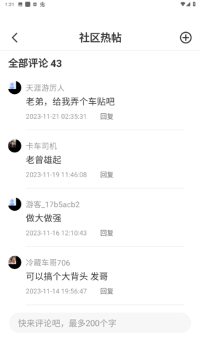 线上社区:劳动者可在此交流心得、分享见闻,内容涉及实时路况、行业经验、新闻资讯、旅途风光与同行互动。