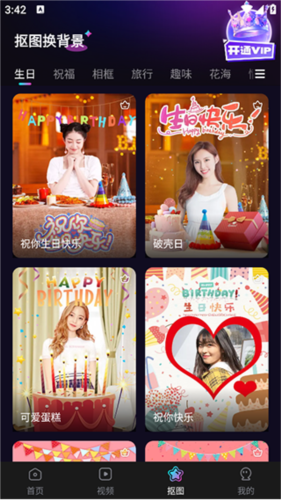 3. 可使用抠图功能更换照片背景;