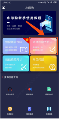 1、启动应用程序,在主页点击进入“本地视频去水印”功能模块;