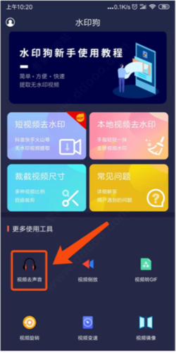 1、打开软件,在首页选择“视频去声音”功能入口;
