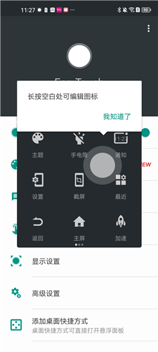 2. 悬浮的“小白点”支持功能自定义,充分满足个性化需求;