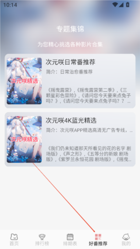 3.进入好番推荐区域,这里筛选的剧集质量普遍较高,能有效降低选择失误的概率。