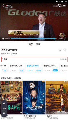 4、应用会自动切换到横屏播放模式,在播放界面可以实现投屏、换台、查看节目单等操作。