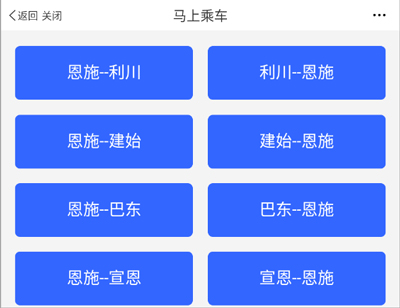 2、根据出行需要选择始发地与目的地,筛选可用车辆。