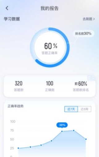 4、学习进度跟踪:每次模拟考后生成详细成绩报告,记录考试数据,让用户清晰看到进步,巩固应考信心。