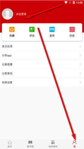 2、进入检察日报应用“我的”页面,选择上方【点击登录】。