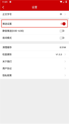3、进入设置页面,关闭【推送设置】后的开关即可。