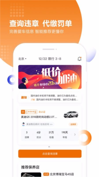 查违章app由长沙合伙人文化传播有限公司开发,是一款专注于汽车违章查询的综合服务软件。它不仅能够快速查询违章记录并发送提醒,还提供实时油价、附近停车场、加油站及银行网点等信息查询功能,帮助车主高效解决各类用车问题,丰富汽车生活体验。