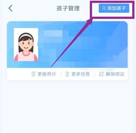 如需绑定多名孩子,登录后切换至【我的】板块,点击【孩子管理】,在页面右上角选择【添加孩子】,补充其他孩子的信息即可完成绑定。