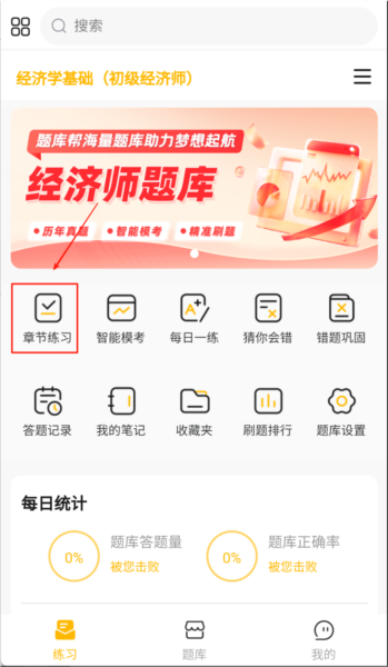 1、章节练习依照教材结构划分学习单元,允许用户自定义每日做题数量与题目难度。
