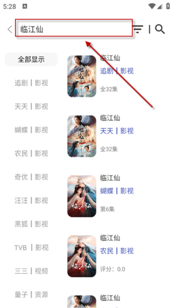 关键词搜索:直接输入影片名称就能查找相关资源;