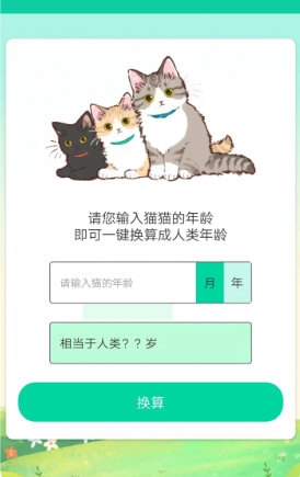 根据猫咪出生日期自动换算其相当于人类的年龄阶段,帮助主人把握宠物的生命周期。