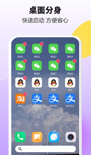 支持在后台快速切换不同的多开应用;