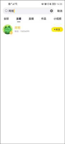 2、输入完成后,在搜索结果中点击该主播的头像。