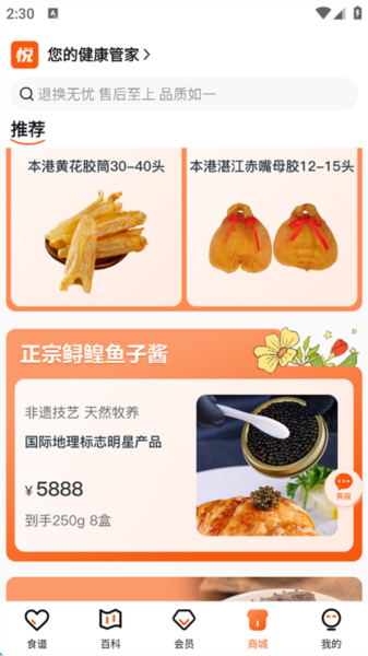 悦滋补app是一个专门销售滋补营养品的电商平台,由专业团队负责产品筛选与搭配。平台在维持优惠价格的同时,始终坚持品质第一,为关注健康生活的用户推荐各类养生好物。平台精选鱼子酱、海参、鱼胶等滋补品,确保每件商品均为可溯源的旗舰店正品。用户购买后可在应用内查看相关食谱,依据个人口味搭配辅料,按照步骤制作养生菜肴。悦滋补旨在通过严选产品与科学搭配,陪伴用户实践食补养生。