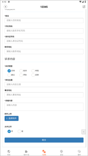 2、进入页面填写个人资料,选择求助类型、输入主题与详细内容,最后提交即可。