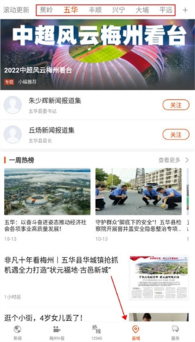 2、点击“县城”选项,可浏览梅州各区县的新闻内容。