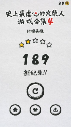 1. 选择一个游戏,例如“火柴人4”,先进行几局游戏赚取一些金币,假设金币数量为30。