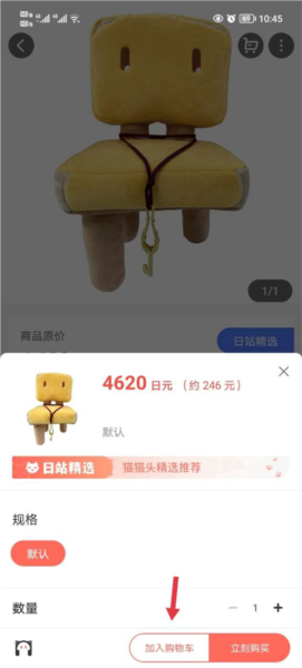 1、进入商品详情页面,点击右下角加入购物车选项。