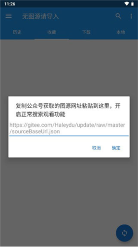 1. 安装并启动软件后,会弹出提示框;此时将获取到的图源网址复制并粘贴到输入框中。