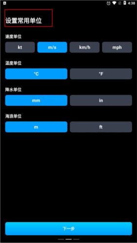 2. 接下来用户可以设置常用的各类单位,例如温度单位与海拔单位等。