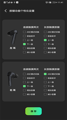 3、左右耳按键功能独立设置,支持自定义操作逻辑;