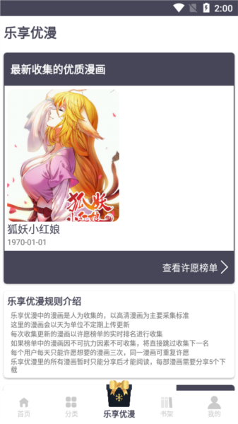 便捷的分享设计,能够将漫画发送至手机桌面以便快速查看;用户还可以创建个人书单,与广大同好交流分享阅读喜好。