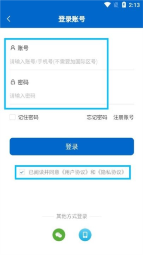 ·勾选【已阅读并同意】,已有账号的用户可直接登录,新用户需先完成注册。