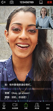 1、同声传译:译员可进行同声传译,支持中英日韩等多语言频道;主持人能指定参会者为译员并在会议中启动口译功能。