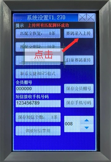 2.安捷触摸V型:等待右下角WiFi或手机卡在线后,进入系统设置,点击赛鸽录入上传,提示上传成功即可。