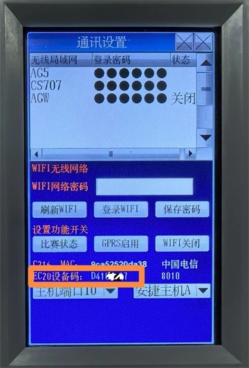 2.安捷触摸V型:进入通讯设置或无线局域网查看8位数设备码。