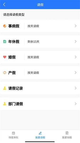 5、多种请假类型:包含事假、病假、产假、婚假等多种请假选项,满足员工各类休假申请需要。