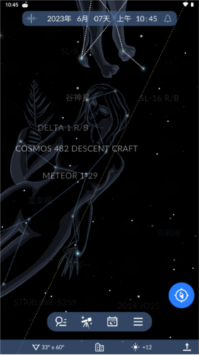 10. 将手机对准天空,交互式星图便会实时显示当前视野对应的空间物体。