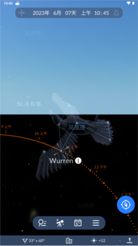 3. 成功定位后,即可查看当前位置实时可见的星座分布。