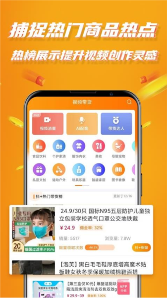 提供丰富的视频带货辅助工具;