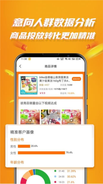 6、每个商品均附有数据分析与客户群体画像,帮助用户进行理性带货;