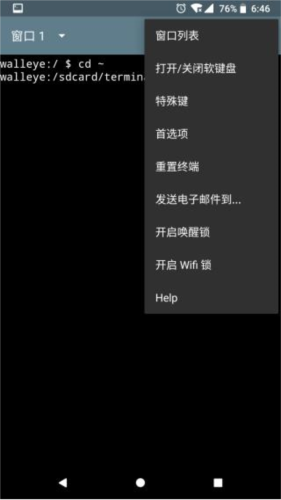 当终端会话运行时,会在Android状态栏显示通知,便于快速返回操作;