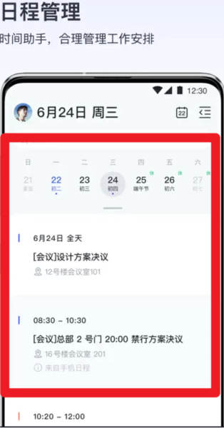 4、利用日程管理功能,可清晰规划每日会议与任务安排,有效提升时间利用效率;
