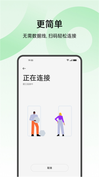 只需通过扫描二维码即可连接两部手机。