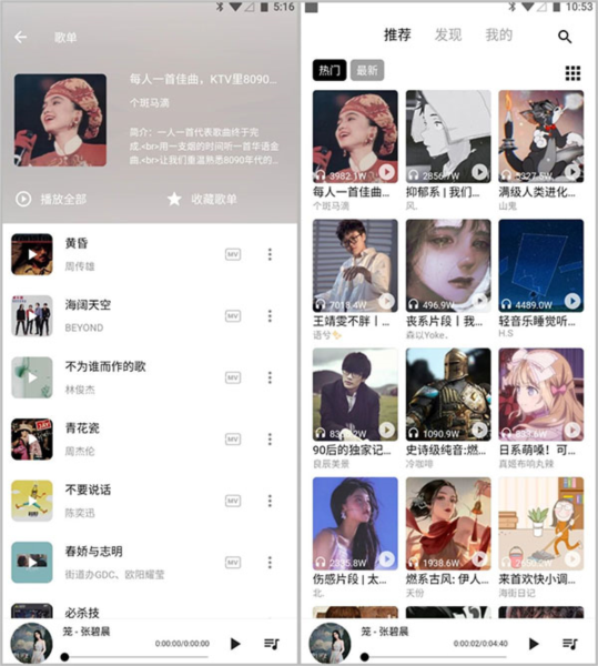 1、内置歌单功能,在应用内可直接查看各类推荐歌单;