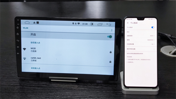 1、将中控屏连接至手机所创建的热点网络。