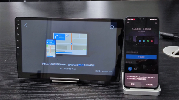 2、打开手机端亿连驾驶助手APP,软件提示是否立即互联,点击“立即互联”。