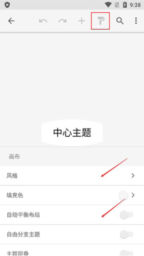 2、系统提供一个基础主题,点击红色框内标识,可进行更换风格、调整填充颜色等设置。