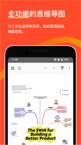 白领、商务人士及互联网从业者将其视为每日头脑风暴、整理思路和规划工作的高效办公软件,它能开启多样工作方式。