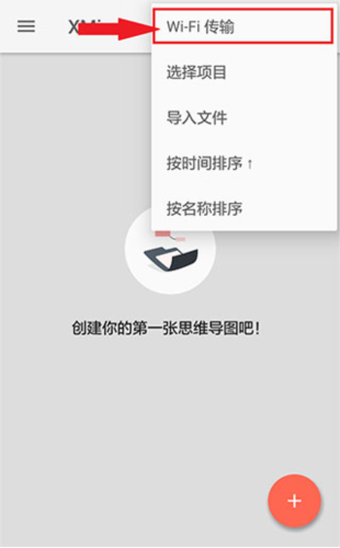 5、点击「上传文件」,选择需要传输的.xmind文件,即可将其导入手机应用。