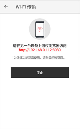 3、通过Wi-Fi传输:点击应用主页面右上角「···」选择「WiFi传输」;注意电脑与安卓设备需连接同一Wi-Fi网络。