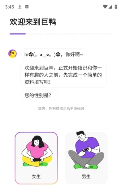 登录后,填写个人社交信息,包括性别、生日与昵称等。