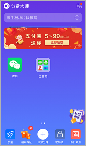 步骤一:在分身大师桌面点击需要双开的应用图标;