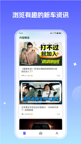 2、选车首页底部新增热门小视频,看车之外看看有趣视频;