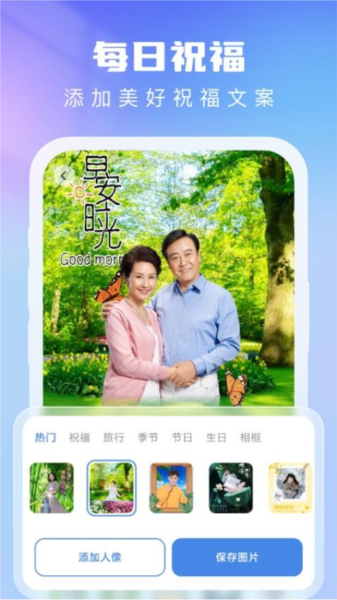 4、祝福文案精选:内置海量精选祝福语句,方便用户为照片配上恰当的文字。